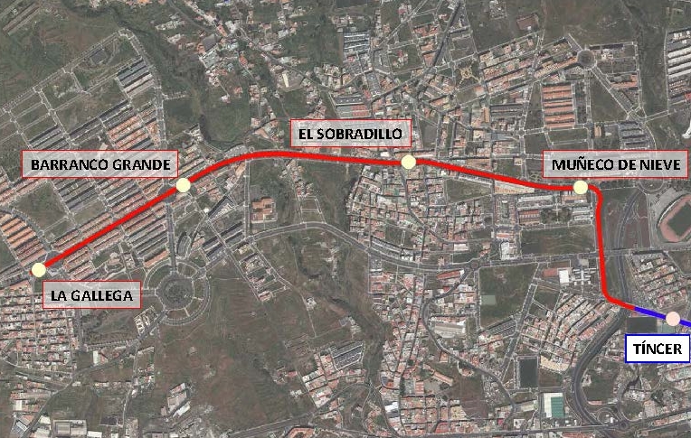 • Tram stops: 4 (Muñeco de Nieve, El Sobradillo, Barranco Grande and La Gallega).