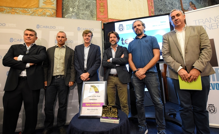 The president of the Island Government and the Metrotenerife, Carlos Alonso, and the managing director of Metrotenerife, Andrés Muñoz de Dios, attended the award ceremony organized by Mainspring, the publishing company of the railway sector. The Global Light Rail Awards are the most important prizes in railway excellence and innovation.
