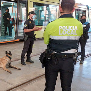 Como en anteriores ediciones, pusimos a disposición de esta actividad formativa un tranvía en las cocheras de nuestra compañía para el desarrollo de los ejercicios de intervención policial en transporte público. Dichos ejercicios se centraron en prácticas de marcaje pasivo, de tal forma que los perros policías focalizan la existencia de la sustancia estupefaciente tanto en personas como en cualquier otra ubicación en el interior del vehículo.