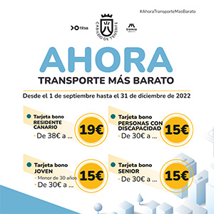 El consejo de gobierno del Cabildo de Tenerife aprobó la bonificación del 100% a partir del 1 de enero de 2023 para los bonos mensuales en transporte, que abarcan el bono residente, el abono joven, el abono mensual senior y el abono mensual de personas con discapacidad. Además, también se aprobó la continuación de la reducción del 50% a cargo de la Corporación Insular para aquellos títulos que no se acogen a la nueva gratuidad, que son el bono de cinco viajes y los bonos de Cabildo para jubilados, familia numerosa y personas con discapacidad.