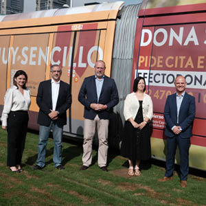 Presentada en la parada de Fundación, el Tranvía da visibilidad de los servicios gratuitos que presta la AECC a pacientes de cáncer y familiares, además de detallar las formas de contacto y colaboración para la próxima campaña de cuestación.